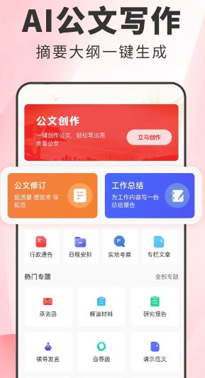 公文寫(xiě)作app是專(zhuān)為公職人員量身定制的一款公文寫(xiě)作軟件,海量適用于各種發(fā)言場(chǎng)景的公文范本供您直接使用,支持公文一鍵生成,用戶(hù)只需點(diǎn)擊標(biāo)題即可生成相關(guān)文檔,非常的方便快捷,無(wú)論是思想?yún)R報(bào)、心得體會(huì)還是會(huì)議發(fā)言均可一鍵點(diǎn)擊完成文章寫(xiě)作。