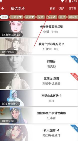 2、在這里選擇要下載的唱段,也可以選擇上方的搜索尋找喜歡的唱段。