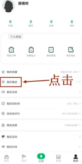 首先我們打開六只腳app,然后點擊右下角的【我的】功能分區(qū),來到我們的個人信息界面,然后點擊那個【我的循跡】。