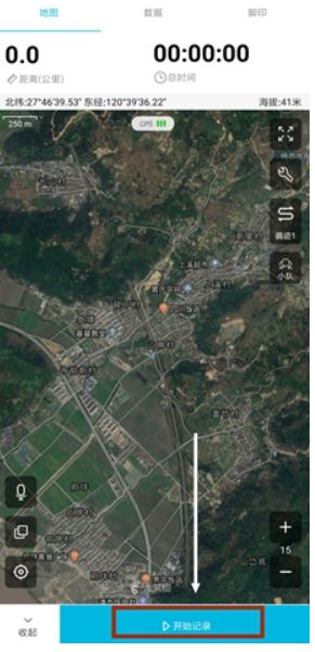 然后我們就能進入到路線的記錄界面,點擊下方的開始,我們即可開始旅游路線的記錄了。