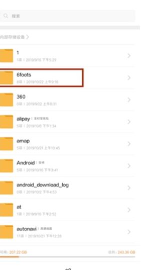 我們打開我們手機的文件管理,調(diào)整到手機那一欄,這里面顯示的就是我們的手機文件夾,我們可以找到一個叫做【6Foot】的文件夾,這就是六只腳的文件。