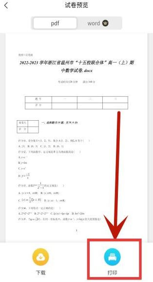 2、點擊要打印的試卷,選擇PDF格式或者WORD格式進行打印,點擊打印。
