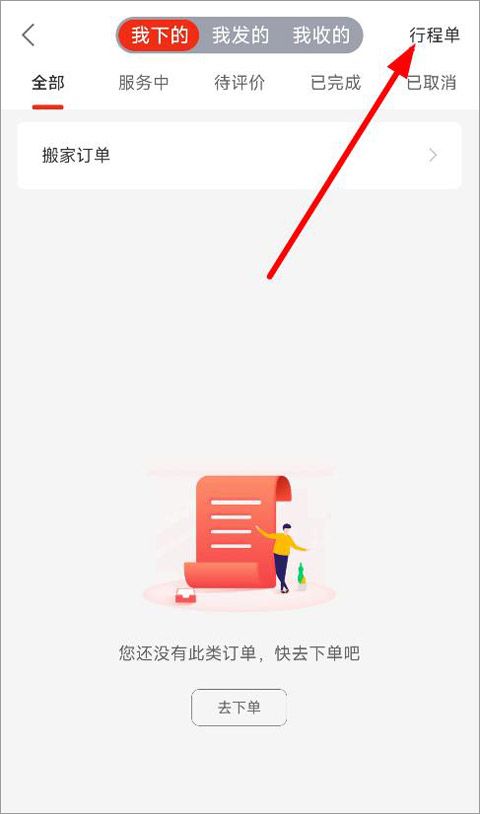 3、打開訂單頁面,可以看到我下的訂單、我發(fā)的訂單以及我收的訂單,點擊右上角行程單;