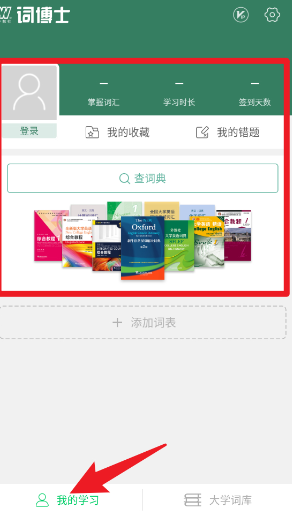 4、進(jìn)入【我的學(xué)習(xí)】,可查看學(xué)習(xí)進(jìn)度、收藏單詞及錯(cuò)題本,便于復(fù)習(xí)鞏固。