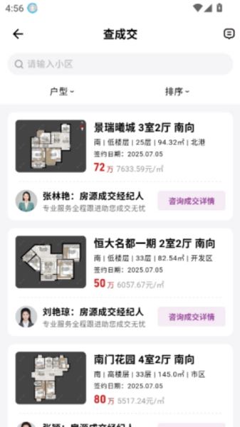 3、這樣你就能看到距離你定位較近的二手房最近成交的價(jià)格日期信息,想了解詳細(xì)的可以咨詢經(jīng)紀(jì)人。