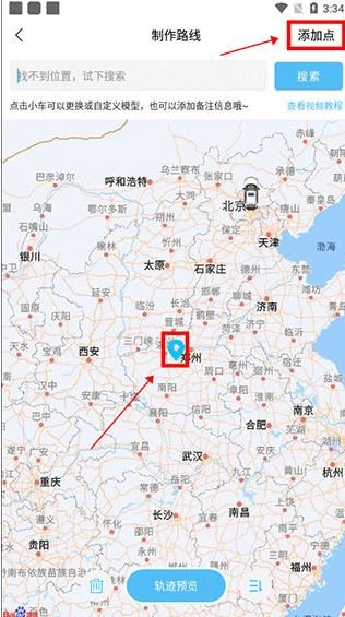 2、將圖中的定位坐標移動到你的目的地,你也可以直接搜索目的地,選擇添加點;