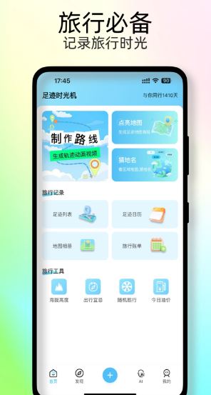 足跡時光機app是一款旅行足跡記錄軟件,用戶可以使用軟件記錄自己走過的足跡,這款軟件可以在用戶外出旅行時通過GPS定位來記錄用戶的旅行軌跡,并生成對應的足跡地圖,將用戶的每一次旅行都完整地記錄下來,用戶還可以在足跡地圖中記錄和分享旅游心得。