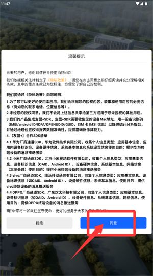 1、啟動應(yīng)用,仔細瀏覽并同意用戶隱私協(xié)議內(nèi)容即可進入。