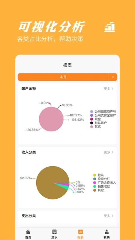 「直觀圖表」貼心匯總,收支/賬戶余額/凈資產(chǎn)變化一看便知