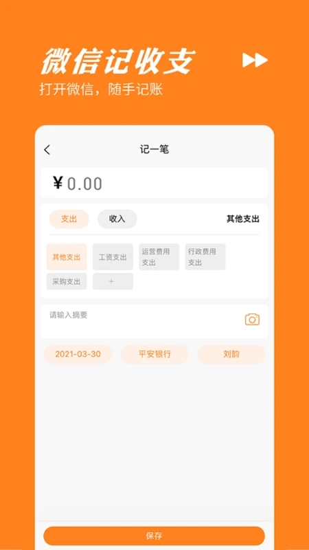 1、APP的記賬首頁右下角橙色的加號按鈕是核心記賬入口,點(diǎn)擊后可進(jìn)入收支錄入界面,幫用戶輕松梳理財務(wù)流水,讓記賬便捷高效,助力清晰掌握個人財務(wù)狀況。