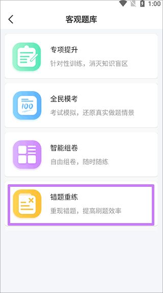 2、然后,在這里找到并點(diǎn)擊“錯(cuò)題重練”按鍵,在這塊有題目的各類信息。