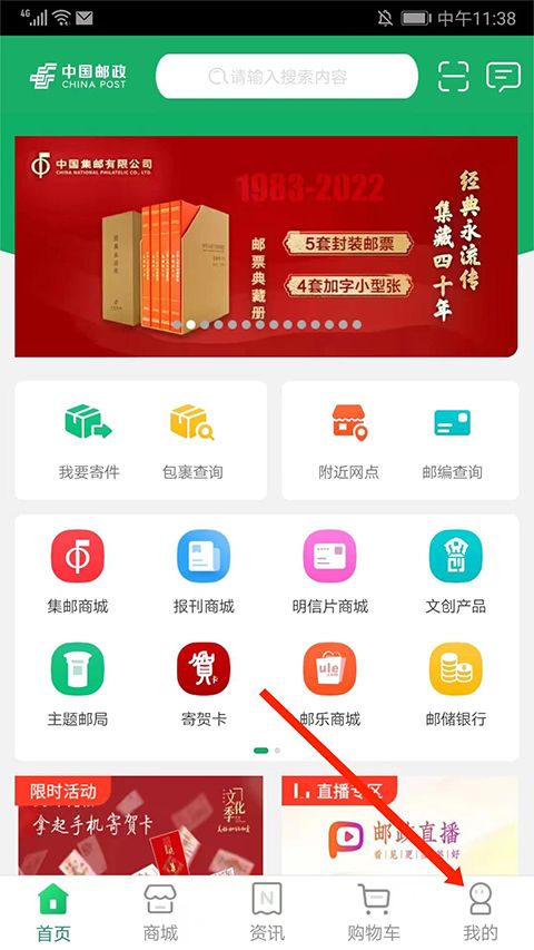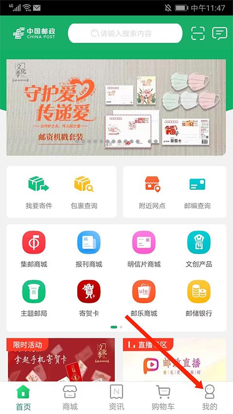 1、打開中國郵政app,選擇右下角“我的”選項,