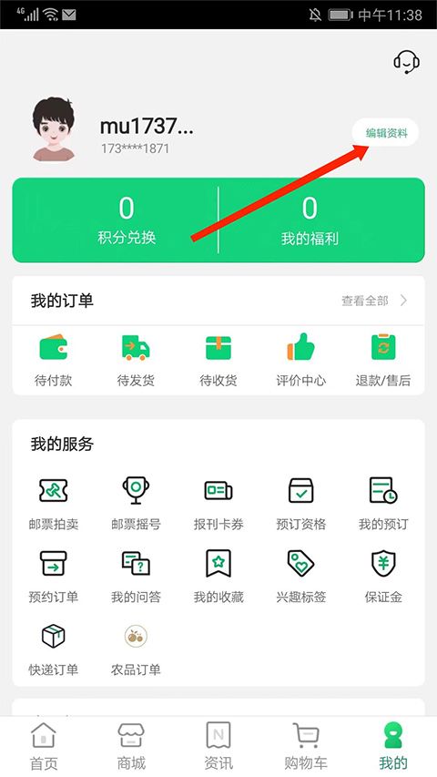 2、進入用戶中心界面,選擇“編輯資料”選項,