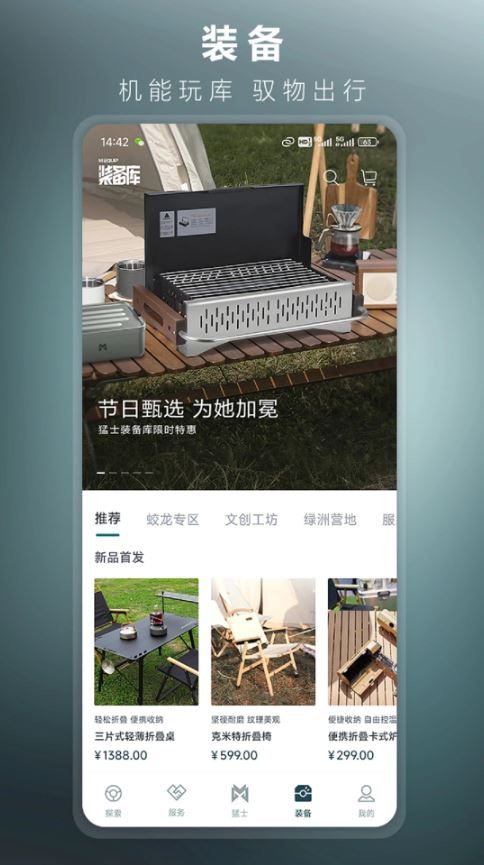 4、軟件還包括活動和裝備兩大板塊。用戶可以參與各種弄潮造浪的活動,玩點野的,體驗猛士精神。