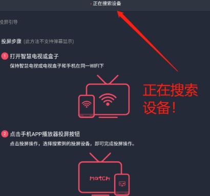4、連接成功后,頁面會顯示正在投屏。需要注意的是,要先開啟投屏的設(shè)備,然后讓手機(jī)和投屏的設(shè)備連接在同一個wifi中。