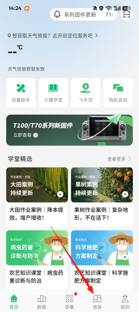 1、打開軟件,登錄之后,點(diǎn)擊【地塊】。