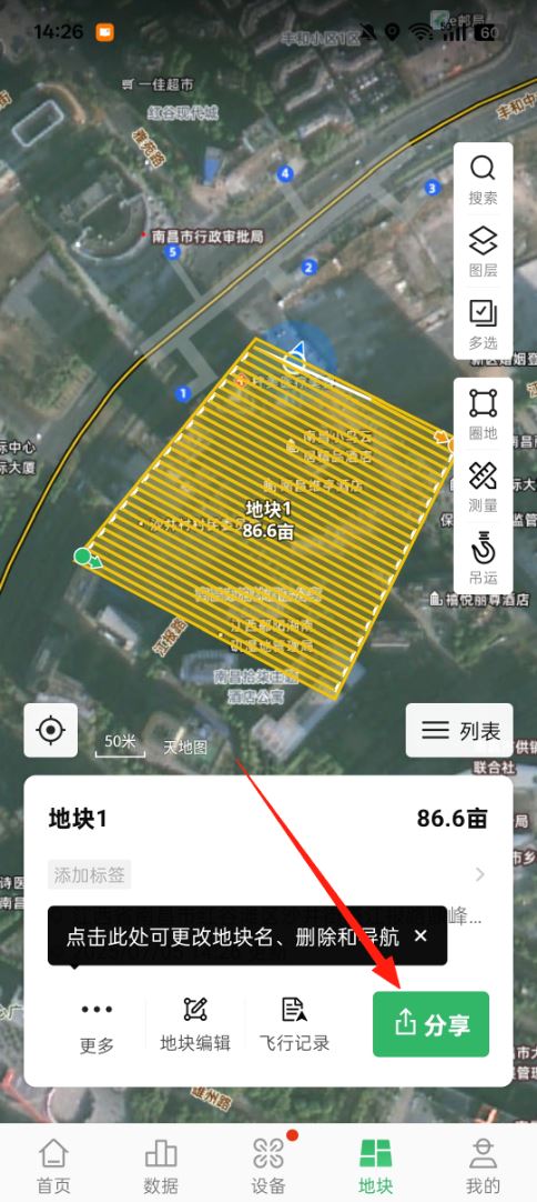 2、然后選擇要分享的地塊點(diǎn)擊【分享】。