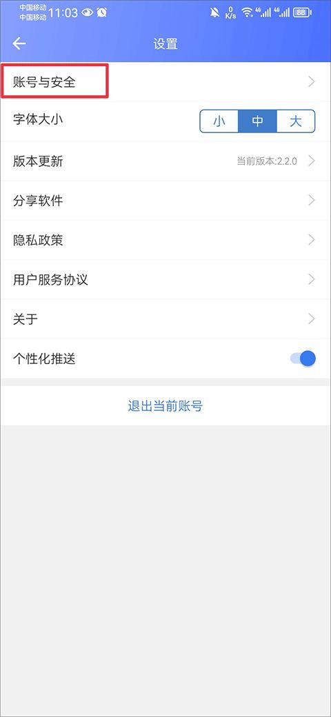 2、在設(shè)置界面中點(diǎn)擊賬號(hào)與安全。