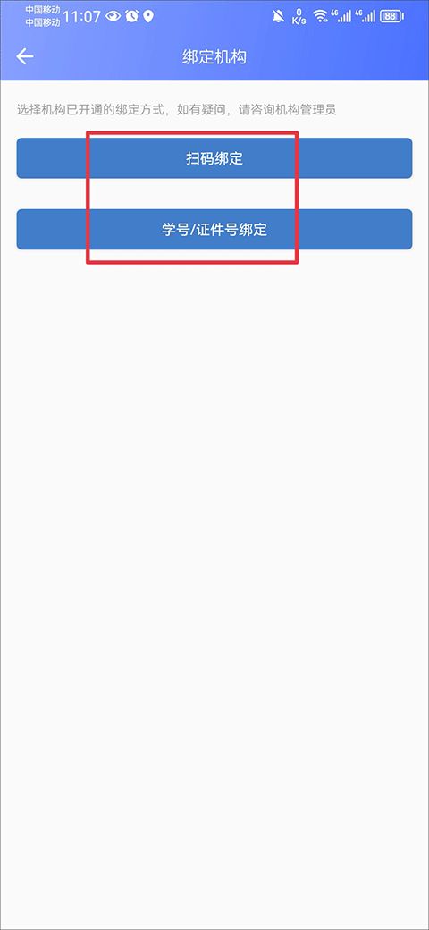 5、最后選擇機(jī)構(gòu)已開通的綁定方式進(jìn)行綁定即可,如有疑問,請(qǐng)咨詢機(jī)構(gòu)管理員。