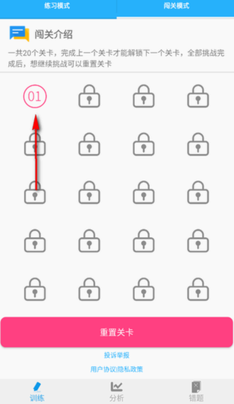 用戶可以在闖關(guān)模式中進(jìn)行訓(xùn)練闖關(guān),輕松解鎖更多的關(guān)卡。