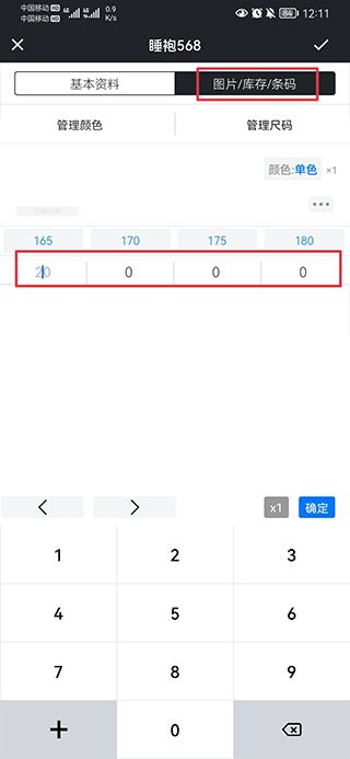 3、在庫(kù)存界面中的商品尺碼下面輸入0。