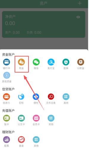 2、選擇“添加資產(chǎn)”按鈕,以開始新增資產(chǎn)賬戶的流程。