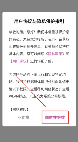 1、點(diǎn)擊同意并繼續(xù)進(jìn)入應(yīng)用。