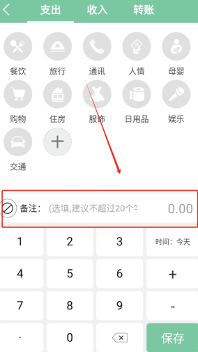 1、點(diǎn)擊首頁記賬按鈕選擇類型輸入金額即可完成一次記賬。