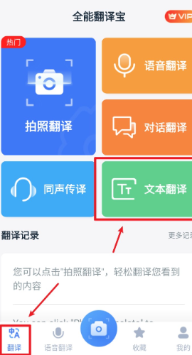 1、進(jìn)入 App 首頁后,點(diǎn)擊下方底欄“翻譯”按鈕,即可進(jìn)入翻譯主界面,支持多種翻譯方式選擇。