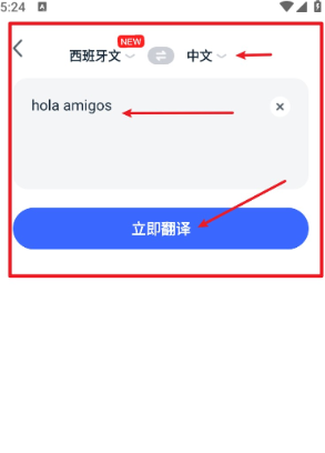 2、在首頁點(diǎn)擊綠色的“文本翻譯”按鈕,選擇對(duì)應(yīng)語種,輸入想翻譯的內(nèi)容后點(diǎn)擊“立即翻譯”。