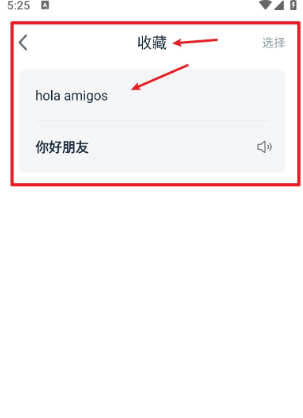 4、點(diǎn)擊底部“收藏”標(biāo)簽頁,即可查看你保存的翻譯記錄,方便隨時(shí)查閱或反復(fù)練習(xí)使用。
