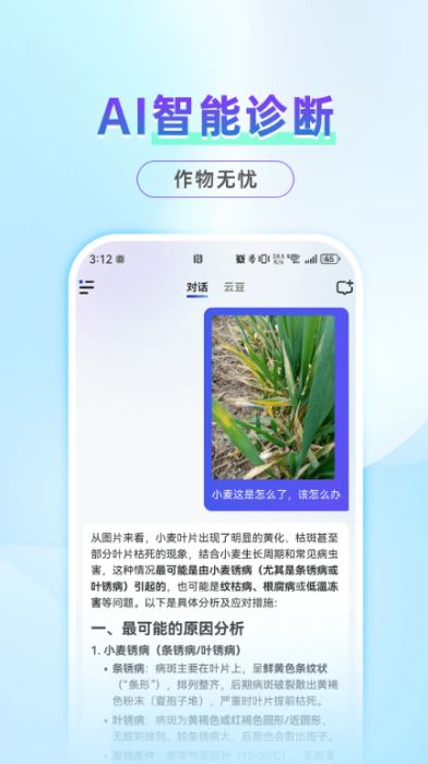 在農(nóng)技服務(wù)方面,平臺(tái)依托 AI 技術(shù)整合海量資源,覆蓋種養(yǎng)殖全流程與病蟲害防治關(guān)鍵環(huán)節(jié),為用戶提供科學(xué)、可落地的生產(chǎn)指導(dǎo);更搭載實(shí)用的 AI 作物診斷功能 —— 用戶只需上傳作物生長照片,系統(tǒng)就能快速識別病蟲害狀況,精準(zhǔn)生成針對性應(yīng)對建議,為農(nóng)業(yè)生產(chǎn)提供精準(zhǔn)化支持。