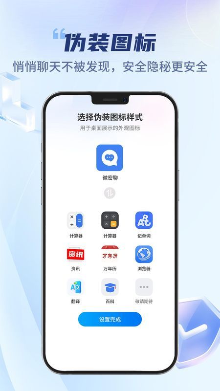 1、應(yīng)用偽裝:支持將應(yīng)用圖標(biāo)更換為計(jì)算器、瀏覽器等日常工具,輸入預(yù)設(shè)密碼才能進(jìn)入真實(shí)聊天界面。