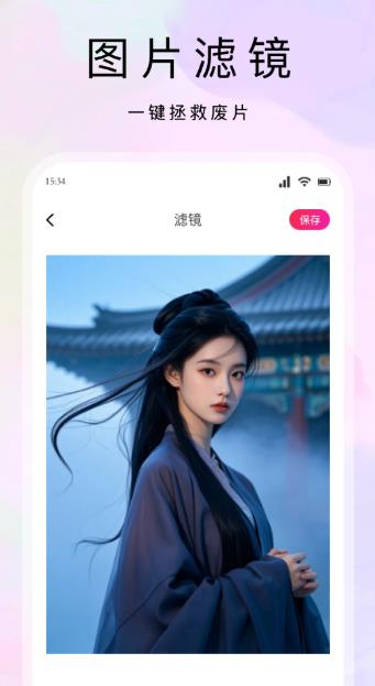 支持濾鏡的添加,可以選擇各種濾鏡使用戶,一鍵出大片,不用修圖;