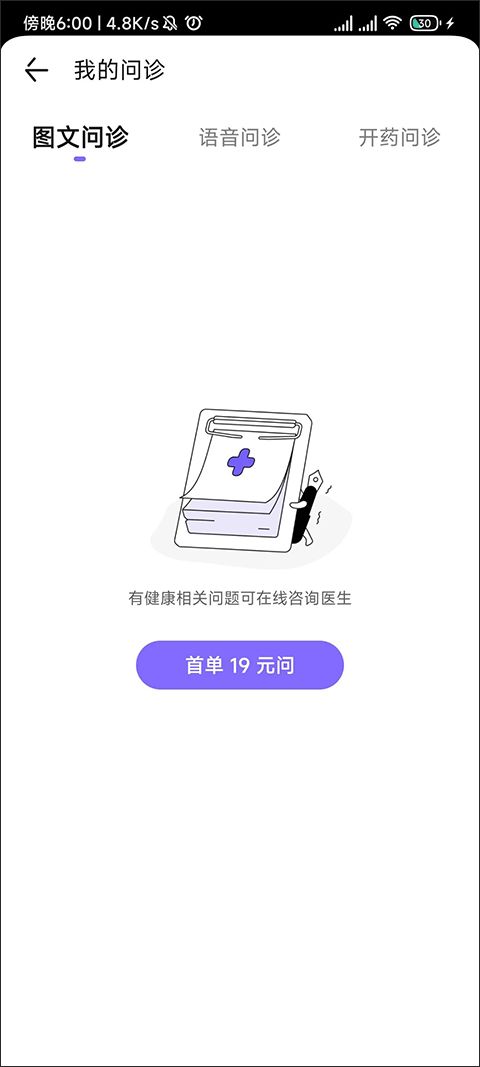2、在這個(gè)界面我們就可以查看我們的問診記錄了,在這因?yàn)樾【幉]有進(jìn)行過問診所以才沒有顯示。