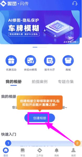 1、啟動應(yīng)用,在首頁點擊“創(chuàng)建相冊”選項。