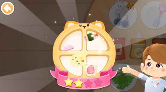 7、系統(tǒng)會根據(jù)寶寶選擇的菜符不符合健康飲食來打分,得到的星星越多表示寶寶選擇的菜越合理。