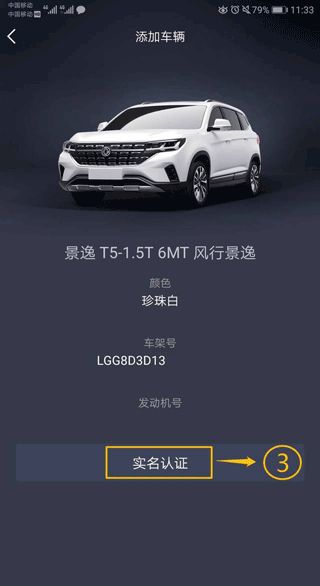 4、審核顯示的車(chē)架號(hào)及發(fā)動(dòng)機(jī)號(hào)無(wú)誤后、點(diǎn)擊【實(shí)名認(rèn)證】。