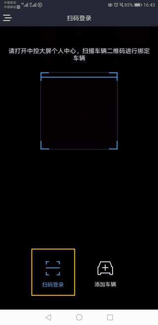 2、打開(kāi)AI風(fēng)行APP【掃一掃】,將APP掃描端口對(duì)準(zhǔn)車(chē)機(jī)個(gè)人中心二維碼,掃描成功即成功登錄車(chē)機(jī)。