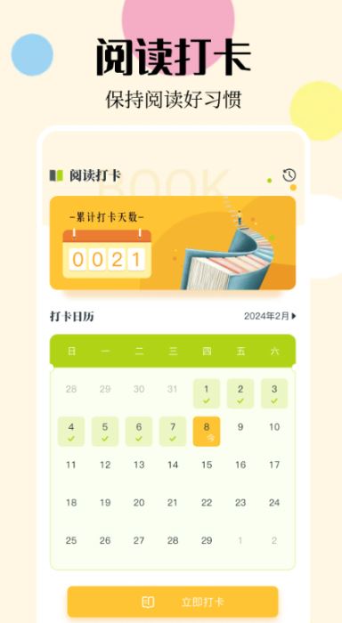 另一個特色功能是內(nèi)置的閱讀打卡日歷。星星閱讀為每位用戶提供了一個個性化的閱讀打卡日歷,記錄您的閱讀進(jìn)度和時長。這樣,您可以持續(xù)地激勵自己堅持閱讀,并了解自己的閱讀習(xí)慣和成長。