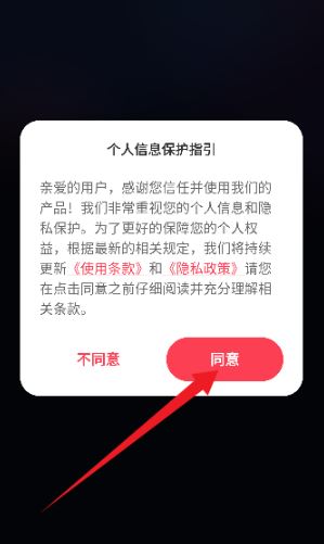 2、進入到軟件首頁,如圖所示。首先請同意用戶協(xié)議和隱私政策。