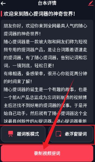 7、可以看到臺本詳情,這里可以選擇題詞板模式,以及是否開啟懸浮窗提詞。