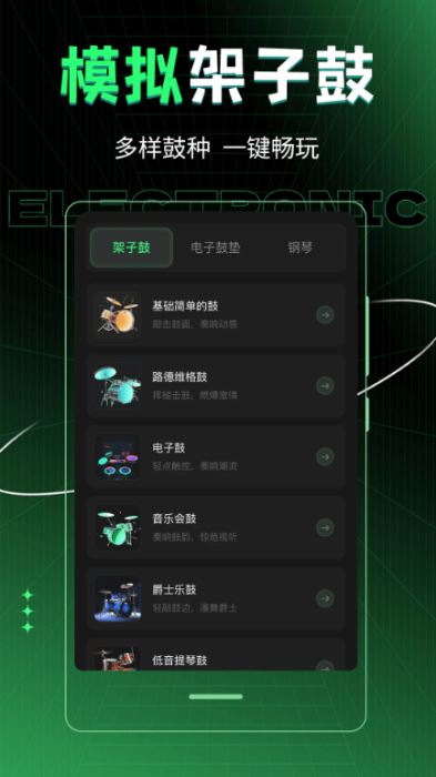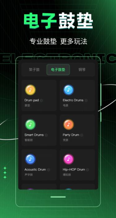 集成多種虛擬樂器(電子合成器、架子鼓、鋼琴等)滿足個性化創(chuàng)作需求。