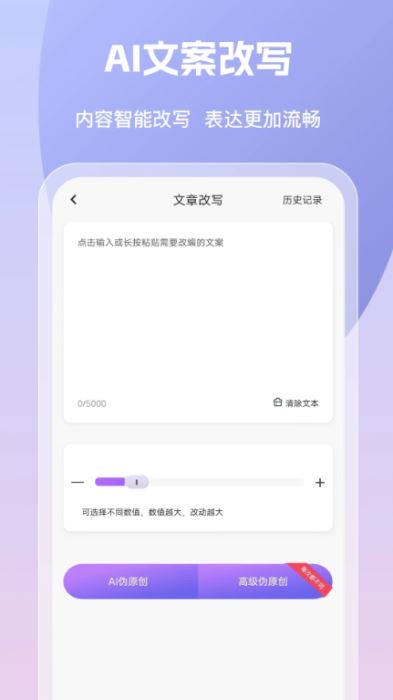 還在苦惱怎么寫原創(chuàng)文案?AI智能改寫功能來幫您!復(fù)制內(nèi)容,一鍵改寫,讓文章表達(dá)更加流暢有創(chuàng)意!