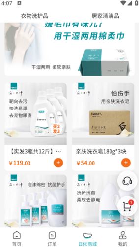 4、除此之外軟件內(nèi)還有日化商城,商城內(nèi)可以購買洗衣液等一系列的東西