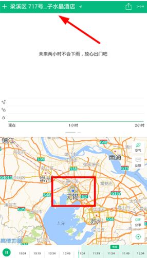 3、如此一來,大家可以從左上角看到自己所在的具體位置,同時(shí)也能了解到所在地附近的天氣情況,非常的方便實(shí)用!