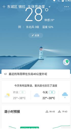 彩云天氣app是一款通過對中央氣象臺的雷達(dá)數(shù)據(jù)進(jìn)行挖掘和圖像處理技術(shù)來進(jìn)行分鐘級別天氣預(yù)報(bào)的手機(jī)應(yīng)用,在多個(gè)方面都進(jìn)行了優(yōu)化,例如軟件的界面設(shè)計(jì)和底層邏輯,一方面優(yōu)化了界面的排版,使其更加的簡潔明了,突出了重點(diǎn)的天氣內(nèi)容,不易分散用戶的注意力。