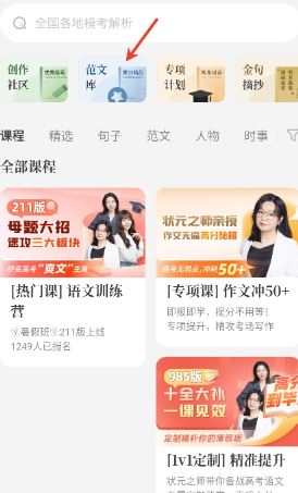 學(xué)生們可以點擊發(fā)現(xiàn)頁面的“范文庫”欣賞優(yōu)質(zhì)中高考作文