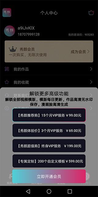 用戶登錄應用后可以前往【我的】頁面中點擊會員圖片來查看會員套餐資費,以及開通會員。目前會員資源如下: