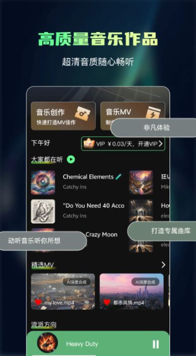 質(zhì)量?jī)?yōu)異,風(fēng)格多樣:AI生成的旋律自然度接近人工創(chuàng)作水平,支持多種音樂風(fēng)格和視覺主題,且能通過深度定制功能調(diào)整細(xì)節(jié),兼顧創(chuàng)作效率與作品質(zhì)量。
